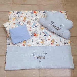 מארז שמיכת קיץ+ שמיכי תוויתוש רקומות + כובע צמר+ ארגונית...