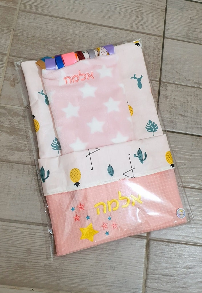 מגיעה במגוון צבעים שמחים, או שקטים יותר ועליה רקום של הילד/ה